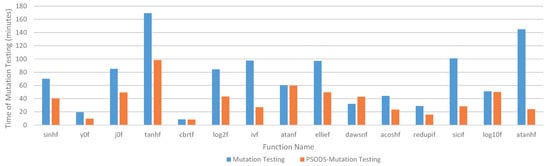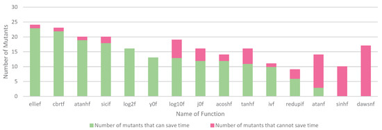 Figure 5 shows the overview of the effect of CPA on fault detection efficiency. As can be seen from Figure 5, CPA can save time for most of the selected functions to find faults. Some functions still have some mutants that cannot save time by CPA, such as sicif. We conducted further analysis on these functions and found that or exists in mutants that cannot save time. This is because CTS randomly injects faults into functions, and the position of faults in these mutants is more conducive to being detected by NCPA. Therefore, or occurs in these mutants, which results in the inability of CPA to save time for these mutants. CPA ranks paths based on their weight, which is calculated according to number of operations in the path and path length. As a result, high-weight paths are more likely to contain faults.