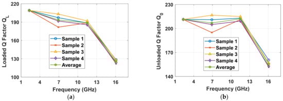 (a) The loaded quality factors and (b) the unloaded quality factors of the selected four samples.