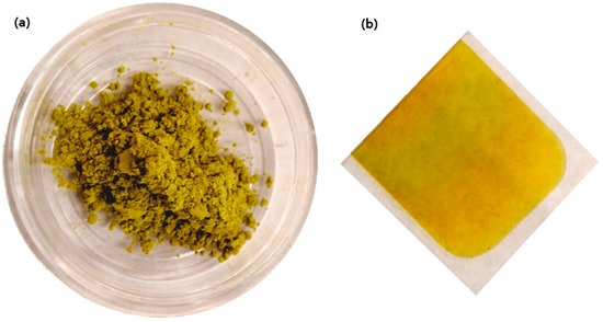 ZnQ2-TCNQ semiconductor in (a) powder and (b) thin film on quartz.