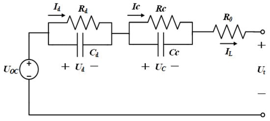 The dynamic voltage characteristics of lithium-ion batteries show mutagenicity and gradualness. The ECM selected in this paper is a second-order equivalent circuit model, as shown in Figure 1.