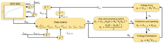 Therefore, adding the forgetting factor to the recursive least squares method can effectively solve this problem and realize the online estimation of battery parameters. The flowchart of the FFRLS algorithm is shown in Figure 2, and the algorithm is as follows: