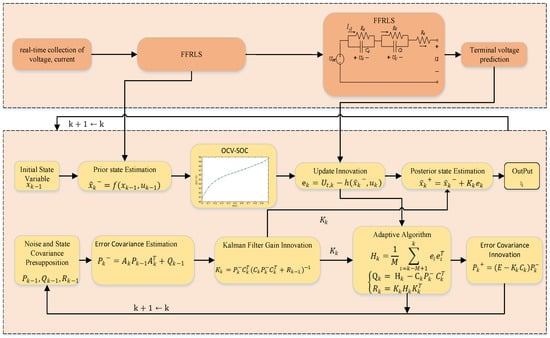 The flow chart of the SOC estimation algorithm based on FFRLS and AEKF is shown in Figure 3.