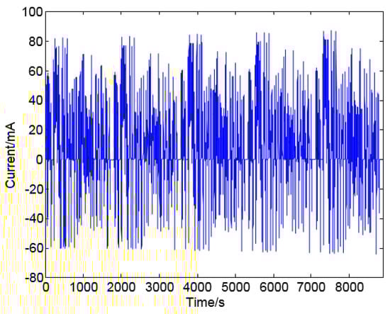 Current profiles of the battery for the Urban Dynamometer Driving Schedule (UDDS) test.