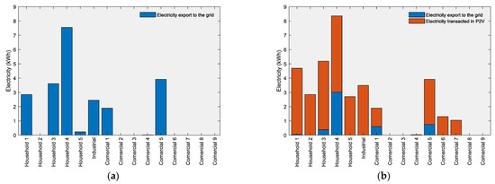 Electricity exported (grid and P2V transactions): (a) Scenario 1 and (b) Scenario 2.