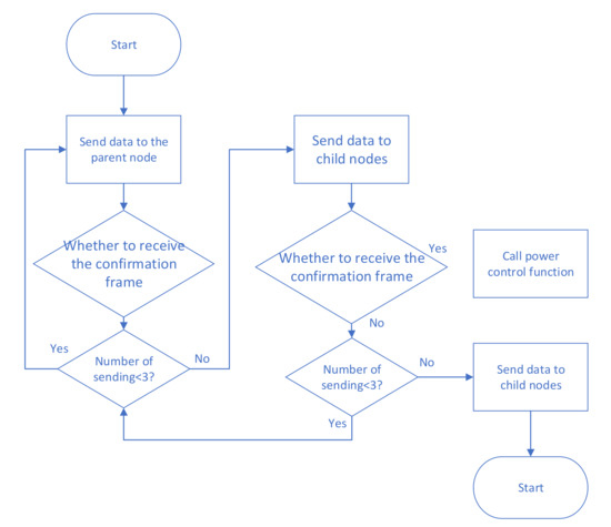 The impact of the mine environment must be considered. The error control protocol is controlled by the Z-TACK protocol stack, which can reduce the environment’s impact. The error control protocol is divided into a response mechanism and a retransmission mechanism. In the response mechanism, if the response frame is received after the data is sent, it is determined that the data is successfully sent; if the response frame is not received after the data is sent, the retransmission mechanism is started. If the confirmation frame is not returned within the specified Response WaitTime, it will be retransmitted. The number of transmissions of the retransmission mechanism is limited, and generally considered to be three times. If the confirmation frame is still not returned, the node is considered offline, the link is broken, and the link repair mechanism is started.