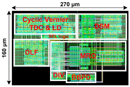 - Yang, S.; Yin, J.; Mak, P.-I.; Martins, R.P. A 0.0056-mm2 –249-dB-FoM all-digital MDLL using a block-sharing offset-free frequency-tracking loop and dual multiplexed-ring VCOs. IEEE J. Solid State Circuits 2019, 54, 88–98. [Google Scholar] [CrossRef]