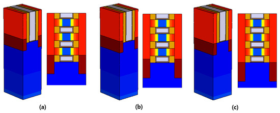 Structure and cross-sectional view according to bottom oxide location: (a) Top; (b) Center; (c) Bottom.