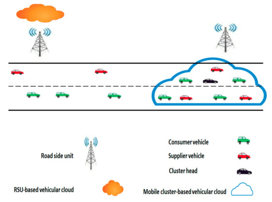 Cloud computing is a paradigm for hosting and delivering services [7]; its providers sell computing resources in the form of data centers, servers, data storage, networks and applications through the Internet. Cloud computing is flexible, scalable and measurable to customers; they pay for what they use. At the advent of edge computing, mobile cloud computing (MCC) is a promising technology that can comparatively resolve the inherent problems that appeared with the increasing number of connected devices in classical cloud computing [8]. Subsequently, MCC involves the emergence of VC [9] in which certain vehicles play the role of suppliers, while the others act as consumers.