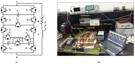 Dual-boost nine-level inverter (DB9LI) is a recently developed topology that exhibit many advantages over other nine-level inverter inverters. The switches engaged in the operation are stressed with low peak inverse voltages. Recent works in nine-level inverter circuits require more number of devices and the implementation cost is higher than the investigated inverter circuit. Furthermore, the automatic capacitor balancing property raises the interest in circuit [37]. In Figure 1, the investigated dual boost nine-level topology is presented. Figure 1a exhibits the schematic of the converter and Figure 1b presents the laboratory prototype developed. The parameters of the simulation environment and the experimental setup are given in Table 1.