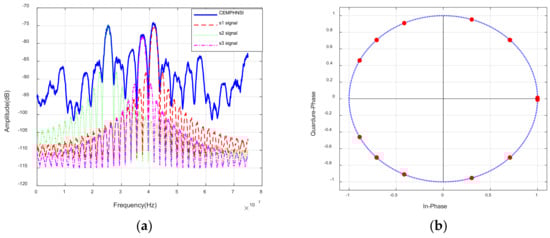 (a) The spectrum of CEMPHNSI and multiplexed signals; (b) The constellation of CEMPHNSI.