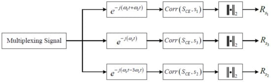 (a) The correlation between 3 multiplexing signals and signal s1; (b) The correlation between 3 multiplexing signals and signal s2; (c) The correlation between 3 multiplexing signals and signal s3.