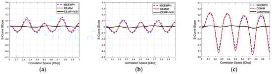 (a) The S-Curve slope of 3 multiplexing signals with signal s1; (b) The S-Curve slope of 3 multiplexing signals with signal s2; (c) The S-Curve slope of 3 multiplexing signals with signal s3.