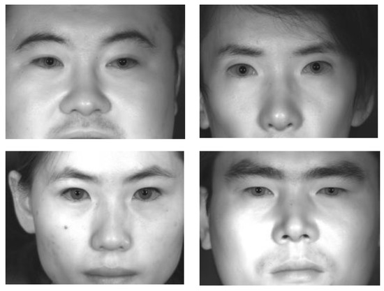 In our experiments, we choose CASIA iris distance dataset as iris and face multimodal dataset. This dataset was produced by Chinese Academy of Sciences. It used an advanced biometric sensor, which searched iris and facial patterns in the field of vision 3 m away. The images of the dataset were captured by a high resolution camera so that both dual-eye iris and face patterns were included in the image region of interest [55]. This dataset contains 142 subjects and a total number of 2567 images. Each image has pixels. Figure 6 shows example images from CASIA-Iris-Distance.