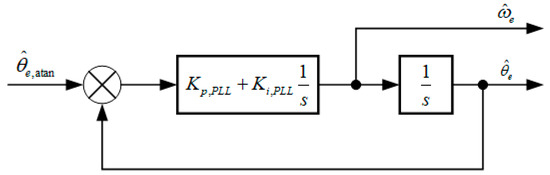 where is the estimated rotor position using the arctangent function. Then a phase-locked loop (PLL) observer is used to extract the rotor position and speed information in consideration of noises and harmonic components within the observed signals [28]. The structure of the PLL observer is shown in Figure 3 and the closed-loop transfer function of the PLL can be derived as: