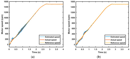 Motor speed during the startup process: (a) Non-loaded situations; (b) Loaded situations.