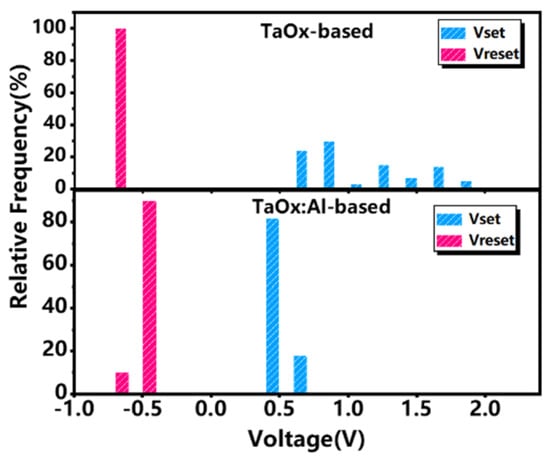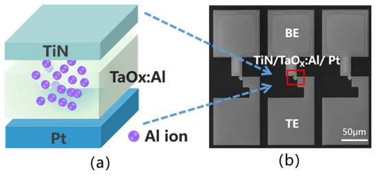 - Wang, Z.; Kang, J.; Fang, Y.; Yu, Z.; Yang, X.; Cai, Y.; Wang, Y.; Huang, R. Localized metal doping effect on switching behaviors of TaOx-based RRAM device. In Proceedings of the 16th Non-Volatile Memory Technology Symposium, Pittsburgh, PA, USA, 17–19 October 2016; pp. 1–3. [Google Scholar]
