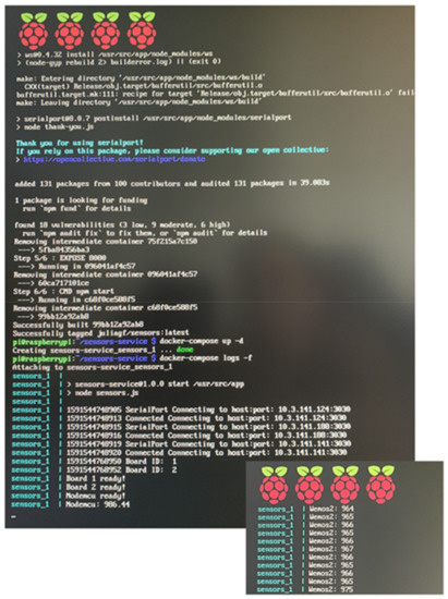 Therefore, the total energy consumption per cycle is 0.11274 mAh. For a battery with a capacity of 14,000 mAh, a total of 124,179 transmissions can be performed. Considering 2880 transmissions for each day, the node can be active for 43 days. The Raspberry Pi 3 B+ is constantly active and consumes 400 mA per minute with onboard WiFi.