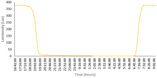 Finally, the luminosity is presented in Figure 25. As can be seen, the luminosity remained mostly constant until sunrise and sunset, where it varied rapidly.