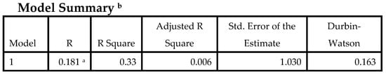 | 1 | Regression | 28.237 | 22 | 1.283 | 1.209 | 0.231 b |