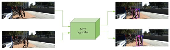 - Leal-Taixé, L.; Milan, A.; Reid, I.; Roth, S.; Schindler, K. Motchallenge 2015: Towards a benchmark for multi-target tracking. arXiv 2015, arXiv:1504.01942. [Google Scholar]