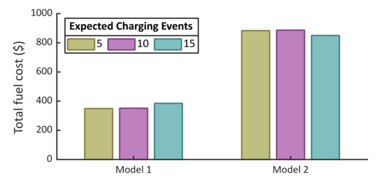 On the other hand, it is necessary to model the number of charging events that may occur in a day. It is assumed that this parameter can be either predicted based on historical data or directly estimated from for example market studies. In this sense, the number of daily charging events () is modeled with a normal distribution, where the mean stands for the daily expected number of charging events and models the standard deviation, as follows: