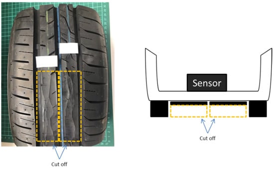 Although the manufacturer can provide information on the strength of the magnetic force of a tire so that we can judge the tire wear, such experiments are time consuming. Our method entails a strategy that can reduce the time for such experiments. Using the whole tire to perform the experiment takes a lot of time, but our method uses a tire slice to verify the magnetic force trend. The wear results are verified based on the tire slice. This slice can provide a simulation environment, as shown in Figure 6. The tire slice is cut from part of the tire surface. This space is the verification area.