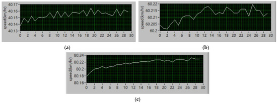 Estimated speed result: (a) speed of 40 km/h; (b) speed of 60 km/h; (c) speed of 80 km/h.