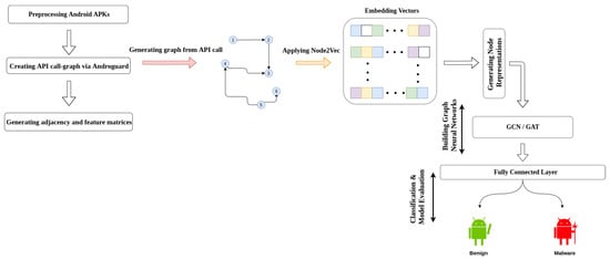 - Xu, P.; Eckert, C.; Zarras, A. Detecting and categorizing Android malware with graph neural networks. In Proceedings of the 36th Annual ACM Symposium on Applied Computing (SAC ’21), New York, NY, USA, 22–26 March 2021; pp. 409–412. [Google Scholar]