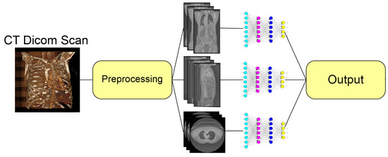 In the following sections, the proposed aortic segmentation approach and its pipeline are described in Figure 1. In particular, in Section 3.1, the pre-processing steps (resampling of CT scans—available in DICOM format—normalization and extraction of slices for each view) are presented. Subsequently, segmentation models and their training are discussed in Section 3.2.