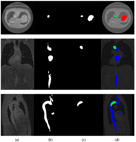 - Noothout, J.M.; De Vos, B.D.; Wolterink, J.M.; Išgum, I. Automatic segmentation of thoracic aorta segments in low-dose chest CT. In Medical Imaging 2018: Image Processing. International Society for Optics and Photonics; SPIE: Bellingham, WA, USA, 2018; Volume 10574, p. 105741S. [Google Scholar]