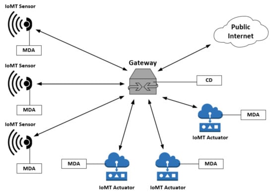 - Receive the reports transmitted by the MDA components running on the IoMT devices that are connected to the gateway;