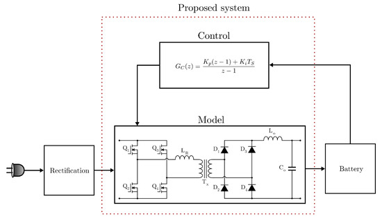 Different studies of topologies used for EV charging, conversion stages, and power levels have been presented [5,6,7,8] as well as projects to obtain a higher efficiency from batteries [9]. These studies have made it possible to clarify the topologies that can be useful for battery charging and the advantages and disadvantages of each one. Furthermore, topologies of full-bridge isolated converters have been proposed [10,11,12]. In these architectures, the efficiency increases, and the cost is reduced using a proper switching strategy.