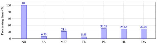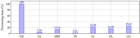 Finally, Figure 6 shows the comparison in percentage of the processing times of all the studied methods compared with the Newton–Raphson approach.