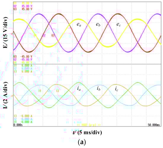 Figure 11 and Figure 12, respectively, show the experimental results of traditional and new FCS-MPDPC under power grid unbalance condition. In Figure 11, waveforms of the three-phase current in the traditional FCS-MPDPC is seriously distorted; especially the A-phase current waveform is approximately triangular. Further spectrum analysis of the three-phase current shows that THD of the three-phase current is 6.374%, 5.865% and 5.835%, respectively, which cannot meet the requirements of current THD of PWM rectifier grid-connected control [23].
