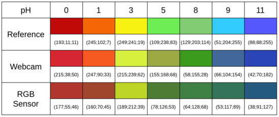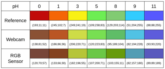 | Values | Reference | RGB Sensor | UDOO | Webcam |
