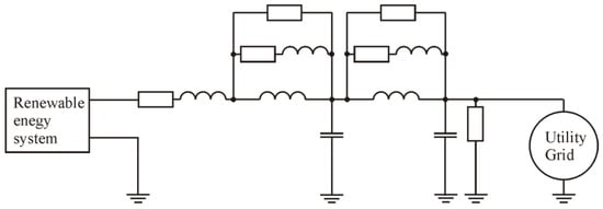 13]. The efficiency of the filter directly depends on the filter element connection point. Some authors suggest inserting filter components into a circuit connecting the MC and the utility grid, others—circuitry that connects renewable energy power sources and the utility grid. The efficiency of a filter by damping the harmonics depends on the direction of the transmitted power and the harmonic flow direction.