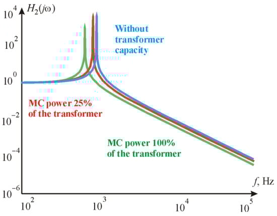 jω). According to the frequency response, it is seen that the influence of the utility grid transformer impedance depends on the ratio of the transformer and the MC capacities. It is also seen that the maximum transfer ratio is achieved when the ratio of the transformer to the MC power is 100%. It means that the utility grid impedance as well as the power distribution line impedance can significantly increase the LC filter’s ability to attenuate switching ripple harmonics.