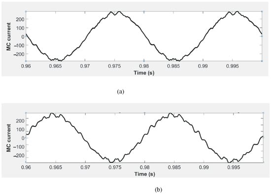 Figure 4), the MC input and output currents have a significantly higher frequency spectrum over the utility grid frequency:
