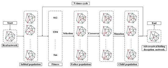 | Algorithm 1 Adversarial hiding deception network optimization method based on genetic algorithm. |