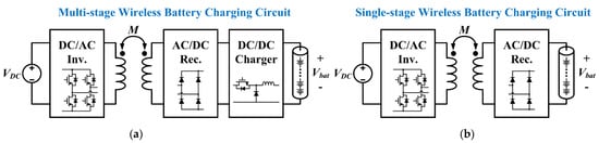 (a) Multi-stage wireless battery charging circuit; (b) single-stage wireless battery charging circuit.