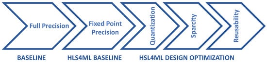 In [9,22], the hls4ml, tool and tool flow is presented. This tool makes use of all previously mentioned techniques to compress a neural network for deployment in a streaming architecture on FPGAs. The tool is compatible with TensorFlow, which facilitates the comparison of compatible CNN models with other hardware accelerators such as TPUs. A more detailed evaluation specifically for CNNs is given in [23]. The hls4ml tool flow is chosen for embedding the CNNs on an FPGA because it generates a streaming architecture output and has compatibility with TensorFlow. The fact that it is directly compatible with TensorFlow offers interesting possibilities for comparing a model with other platforms that use TFLite [12] or the Coral Edge TPU.