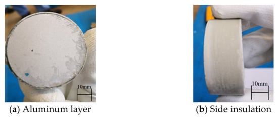 It can be seen from Figure 6a that the side insulating layer flashover first occurs on the varistor near the high-voltage end of the arrester. When the number of side flashover varistors reaches four, the remaining varistors bear all the voltage at both ends of the arrester, exceeding the varistor thermal limit. This results in a thermal collapse of the varistor. It can also be seen that there are suspected chemical corrosion traces on the edge of the aluminum electrode layer of the varistor. This is similar to the appearance of the aluminum electrode layer of the defective arrester. In addition, the morphology of the insulating layer on the side of the varistor is similar to that of the defective varistor, while the color of the insulating layer is inconsistent.
