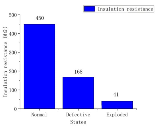 Three test points are selected for the insulation resistance test of the varistor in each state, and the average value of the insulation resistance of each varistor is shown in Figure 11.