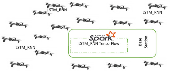 - Yellow: The yellow alarm means that one of the two modules identified the intrusion while the other module did not recognize the intrusion. They only allowed forwarding the received messages to the centralized RNN module. In such a case, the overall network is notified to stop dealing with the exposed drone for a certain period of time. This situation continues until further notification comes from the decision-making module.
