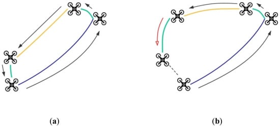 Schematic diagram of PCM algorithm. (a) In the correct loop-closure, a robot returns to the starting point after pose transformation; (b) A false positive loop-closure, which is unable to return to the starting point after pose transformation.
