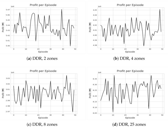 Illustrations of recorded cumulative profits by DDR for different zone settings.