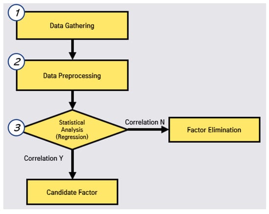 In this correlated factor selection, we conduct data gathering, data preprocessing, and statistical analysis, as shown in Figure 2. First, we perform web crawling to gather the open data for each region in Korea by studying open data sites in Korea.