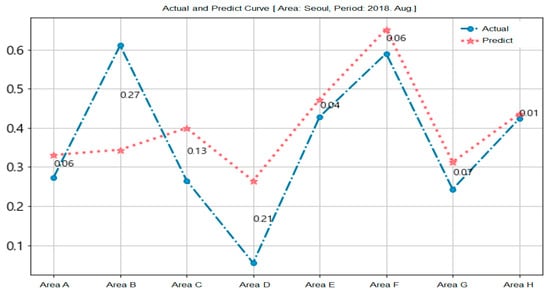 For this paper, because of the amount of data used was not large, we applied the early stopping algorithm to prevent overfitting. Figure 9 shows the comparison results of the predicted and actual values for one area of Seoul.