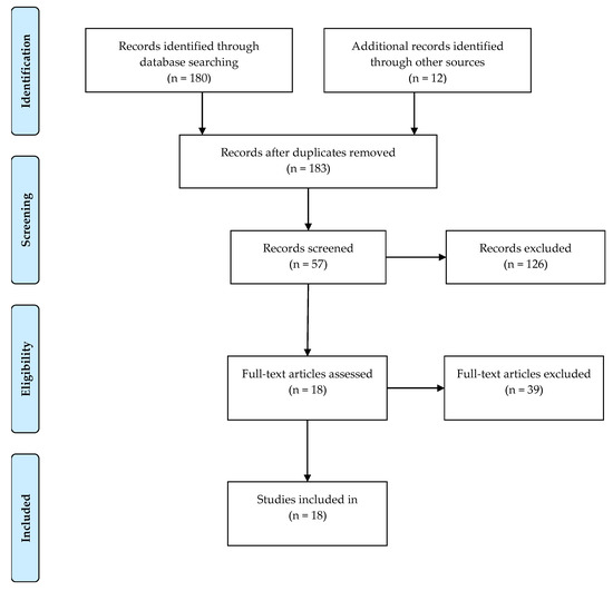 - Moher, D.; Liberati, A.; Tetzlaff, J.; Altman, D.G. Preferred reporting items for systematic reviews and meta-analyses: The PRISMA statement. BMJ 2009, 339, b2535. [Google Scholar] [CrossRef] [PubMed] [Green Version]