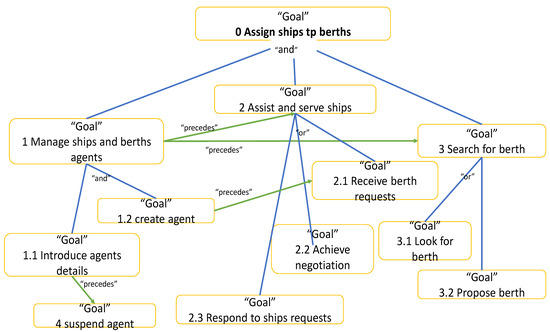 The main purpose of our system is to schedule and assign ships to berths. To achieve this assignment, the system must create and be able to manage vessel and post agents, assist and serve vessels requesting berthing, and seek and provide a berthing position and ultimately build a close-to-optimal solution. Figure 4 shows the goal tree.